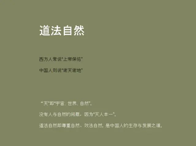 我們經(jīng)常聽說(shuō)人與自然發(fā)生問(wèn)題,但在中國(guó)人的傳統(tǒng)觀念里,沒(méi)有人與自然的問(wèn)題,因?yàn)槿司褪亲匀坏囊徊糠帧N覀円步?jīng)常聽到以人為本,說(shuō)得具體一點(diǎn),是以人為中心的世界觀。中國(guó)人提倡的是天人合一,再進(jìn)一步來(lái)說(shuō),就是天人本來(lái)就是一個(gè)。?