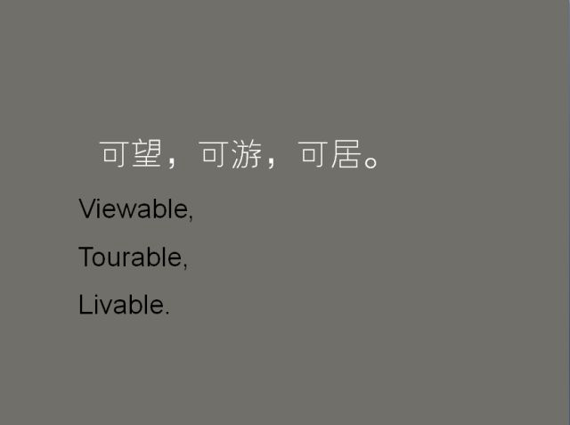 這些都是根據(jù)中國(guó)蘇州園林的傳統(tǒng)理念做的作品。蘇州園林中有一個(gè)設(shè)計(jì)目標(biāo)叫“可望、可游、可居”,你看它跟我們目前的一些設(shè)計(jì)目標(biāo)是不太一樣的。?