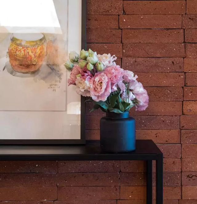 工藝感的打造,除了在功能上滿足主人對于工藝興趣。也依靠材質的選擇和氛圍的營造:紅磚墻的樸實質感能立刻勾起軍工的記憶,含有金屬材質的家居陳設更為自然的空間增添一分硬朗。
