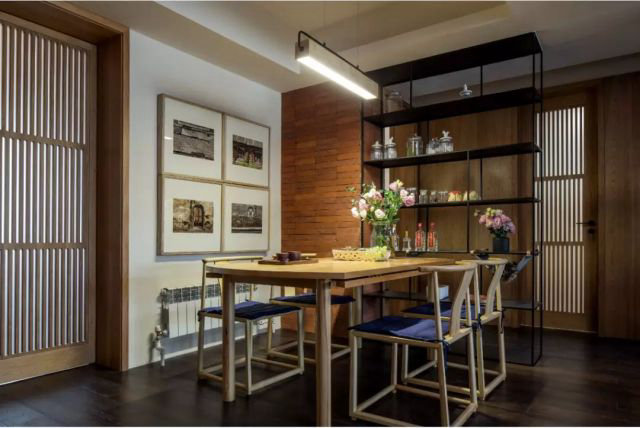 餐廳的長桌,會客時,可以容納十人的坐席,人多時,寫字臺的椅子也可以拿來用,長桌也可以拼成圓桌,滿足徐家一大家子的聚餐幸福時刻。