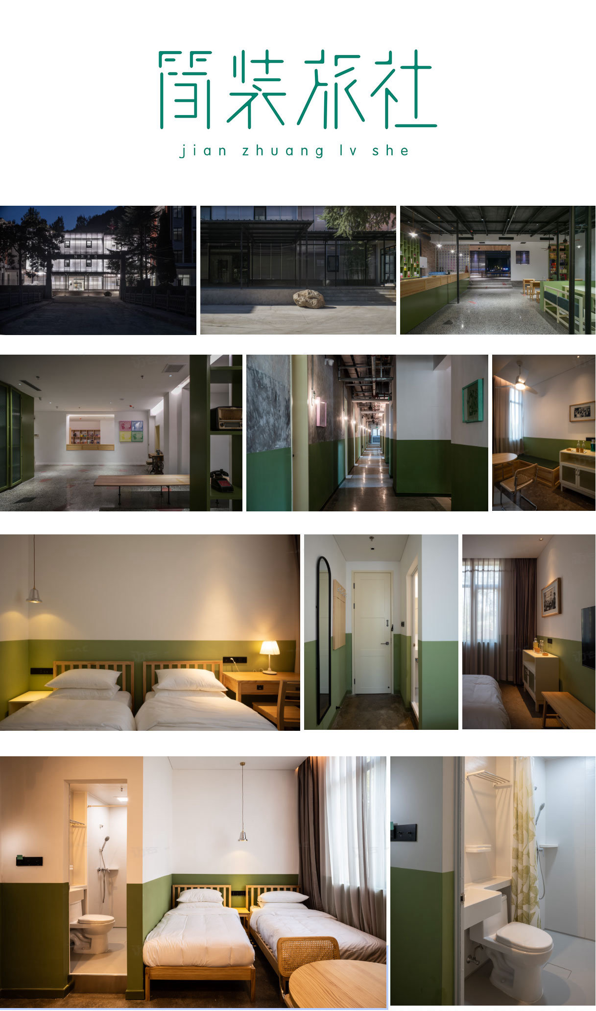 簡裝旅社原建筑是一個老招待所,位處太行山腹地的那些年小鎮,與微建大設計團隊設計的老兵工酒店相鄰。服務低房價需求的會議培訓人群、與中高消費的老兵工酒店互補,經濟節能實用,兼備文化體驗感,是此項目的課題。