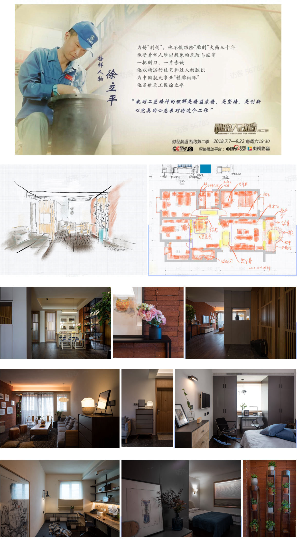 背景:《秘密大改造》第二季的主人公——火藥整形師徐立平,雕刻出的火藥藥面誤差不超過0.2毫米,不僅是2015年度獲選"感動中國"人物,也是2017年航空航天月桂獎"大國工匠獎”的獲獎?wù)摺1酒凇笆栌谡疹櫟募摇保O(shè)計師宋微建為徐立平一家三口,住了12年的六層民居進(jìn)行改造,并致敬“工匠精神”。改造前,三室二廳二衛(wèi),建筑面積138㎡,套內(nèi)面積108㎡,客廳墻面已被暖氣熏黑,墻面大面積開裂;陽臺與客廳的隔墻遮擋,影響了采光;儲物空間少,家中物品隨處堆放;另外,航天人工作的特殊性,家中家具的實(shí)用、舒適遠(yuǎn)不能滿足需求。